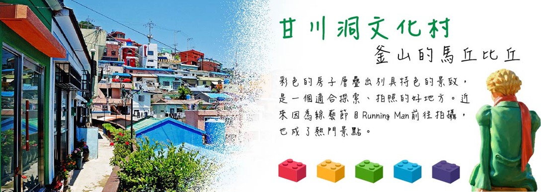 韓綜Running Man取景地~『積木村』甘川洞文化村→人蔘專賣店→韓國彩妝名店→松島龍宮雲橋→松島海上纜車(含來回覽車券)→釜山西面鬧區